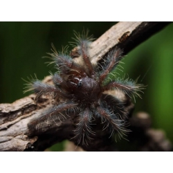 Názov „Hati Hati“ znamená v indonézštine „pozor“ alebo „opatrnosť“. A nie je to náhoda. Tento nádherný stromový sklípkan nie je nič pre slabé povahy. Pochádza z dažďových pralesov Sumatry a v dospelosti sa pýši úžasným sfarbením – kombináciou krémového karapaxu a sýto fialových až hnedých nôh s tmavým ornamentom na brušku.